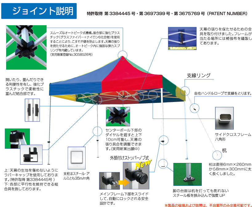 強度・機能が充実した安全設計。天幕の勾配を上げ、雨が流れやすいように改良。